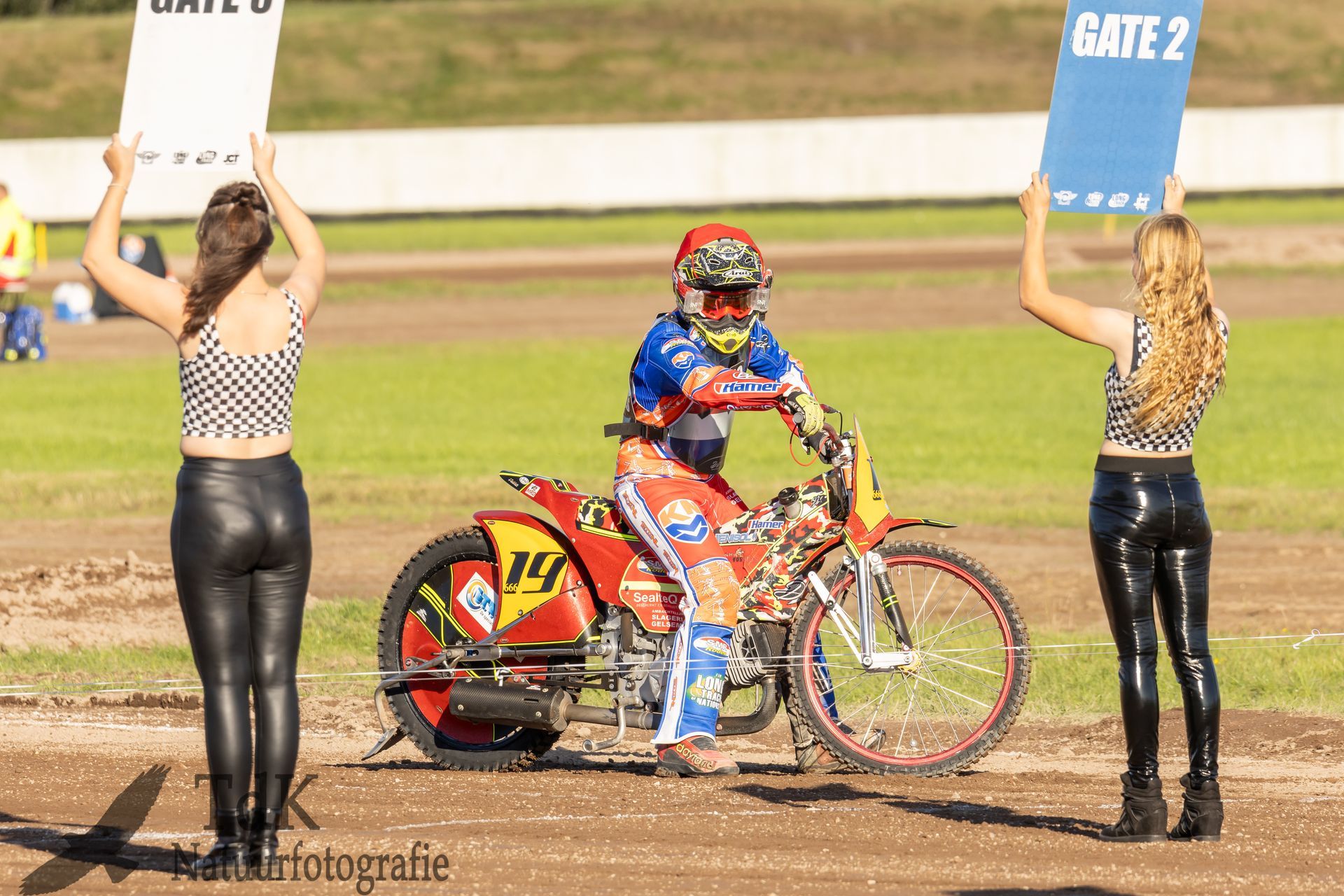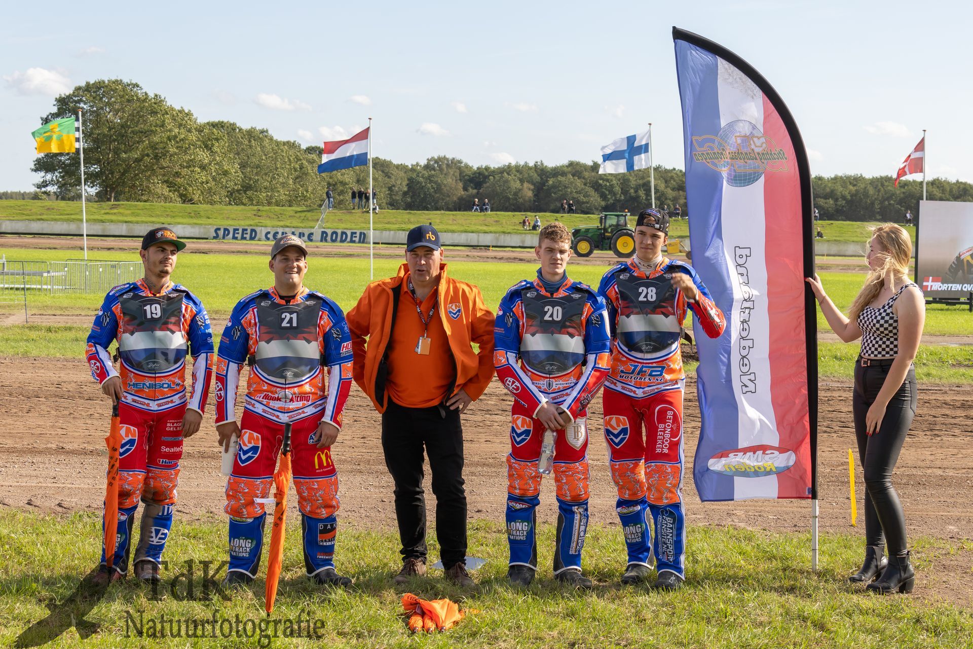 En toen de zondag, wat een drukke dag was dat. de wekker ging om half zeven in de ochtend al omdat ik eerst de F1 wilde zien. Daarna nog een kop koffie genomen en langzaam aan richting het "Speed Centre Roden" om foto's te maken van de "FIM Long Track of Nations". Landenteams die met drie rijders tegen elkaar streden om de titel. Het duurde lang voor de start plaats vond omdat de baan ook veel last had gehad van de regen een dag eerder. Omdat ze uiteindelijk bijna drie uur later toch van start gingen kon ik niet tot het eind blijven, want in de avond zouden wij naar Bouke and The Elvis matter band. Groot-Brittannië die gezien werd als titel kandidaat werd derde en Nederland haalde de finale. Een finale tegen Duitsland. Maar er was maar een rijder de baas vandaag, en dat was Romano Hummel uit Hoogkerk, hij won alle heats die Nederland reed. En zijn teamgenoten volgden in zijn spoor. Nederland won de finale met drie punten meer.
